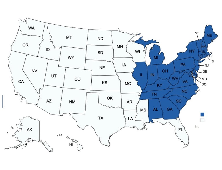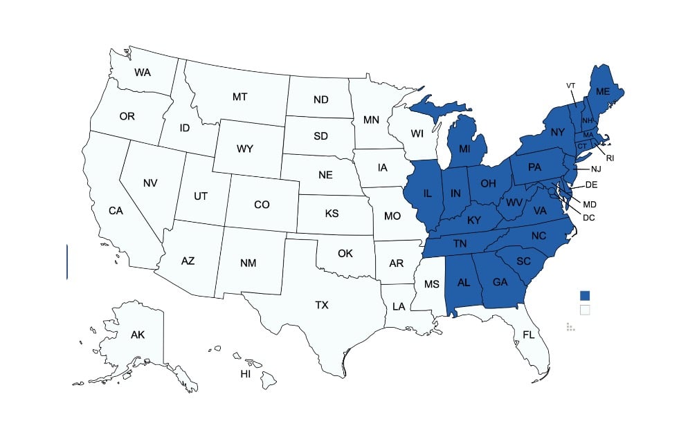 CT MA ME NH NJ RI VT DE NY PA MD NC SC VA WV